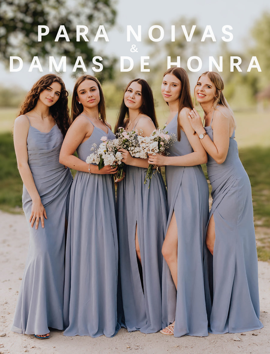 Tornamos todos no time excepcionalmente lindos com vestidos de dama de honra em todos os tamanhos e mais de 70 cores para misturar e combinar, com 3 amostras grátis antes de comprar. Além disso, a maioria dos vestidos custa menos de €100.
